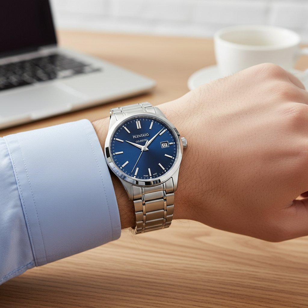 SKU: AN5645 Category: Smart-Look Watches Tags: blue dial watch, designer watch for men, leather strap watch, men's luxury watch, minimalist timepiece, Plentayo Celestial, stainless steel watch Brand: Plentayo