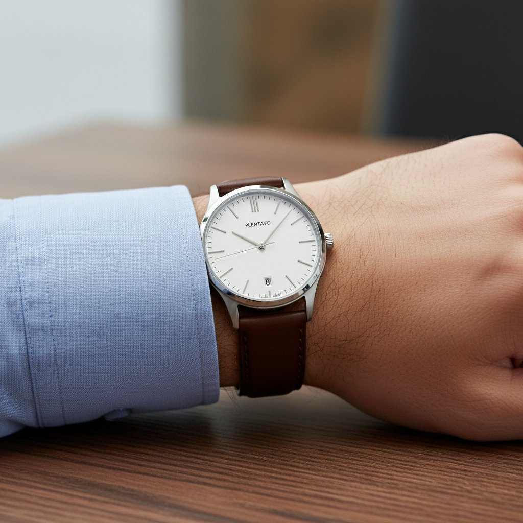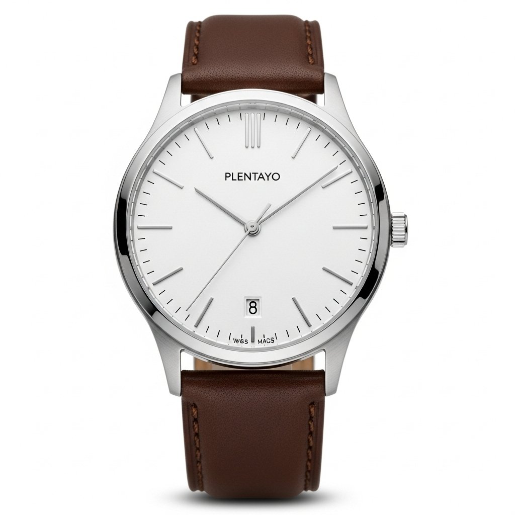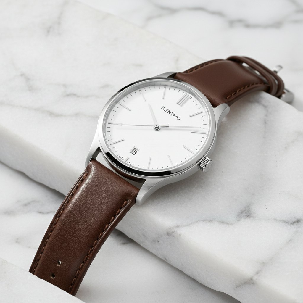 Plentayo Classic Modern Minimalist Watch – Stainless Steel Case, Leather Strap