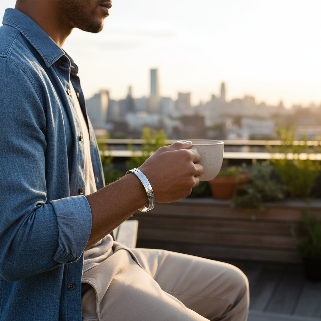 Adjustable open cuff design ensures a comfortable fit for most wrist sizes.